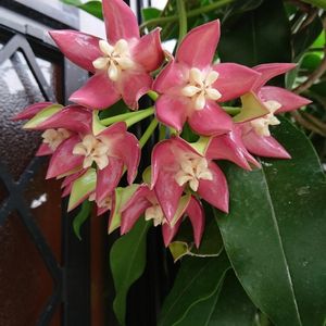 Hoya imperialis (ホヤ インペリアリス) ホヤの中でも最大級の花を咲かせます。 20センチくらいのカット苗を(2年以上だったかな🤔)大事に育ててきました! 多分2mくらいに育っています。 このホヤ、ようやく蕾が大きくなって初開花間近というところで…蕾が萎んできました😱 暖房入れてない部屋だったからかも…💦 せっかくなので、ひと花をこじ開けてラクノーサと並べて📸パチリ! ねっ!おっきいでしょー😁 しかも、、、 白花と思い込んでいたら赤花だったわ🤣