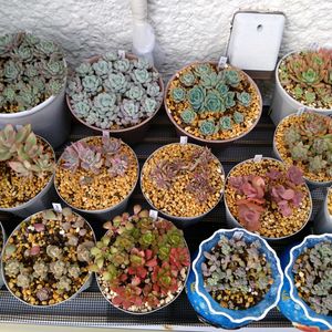 とうとう手を出してしまった( ᐛ )アハー 昨日植物園の多肉植物展に行ったんだけど、エケベリアやセダムがほとんど売ってなくて、こちらに…👀✨ ①シゾバシス イントリカータ 葉っぱが枯れてるのが気になったけど、これから休眠期に入って枯れてくるということだったので(👈誤情報)球のキレイな気に入った子を選んだよ(´˘`*) 白いかわいいお花が咲いて、種もできるんだって〜💓それをまた撒くと増やせるよ〜と教えてもらった。楽しみ( ᵒ̴̷͈ᗨᵒ̴̶̷͈ )✨✨ ②アルブカ いくつかあった中から、ウェーブの感じが一番好きだった子をお迎え(∩´∀`∩)💕 育てやすいらしい。 ③帰りにナーセリーに寄り道して、エケベリア&セダムもお迎えしてしまった。(´>∀<`)ゝ いいな〜と思いつつ今まで会ったことがなかったすみれ牡丹と確か小さいうちに☆になったブルーエルフ。 写真だと色が違って見えるけど、渋めの赤のつぶつぶで茎も赤の玉葉に一目惚れ😍💘