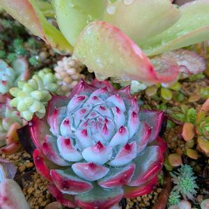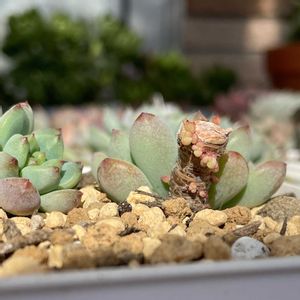 あまり調子が良くなかったブルーアップル🍏 1年前に植え替え だんだんと元気になって子株が沢山😍親株も2つになろうとしています♪ 青白い葉がうっすらと紅葉し始めて綺麗です グリーンローズも肉厚になり少しピンクになった子もちらほら🥰 また可愛い姿を見せてくれる季節がやって来ます