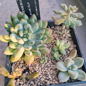 鉢減らしの寄せ植え ゴースティ(桜牡丹)の子株をかっとして入れた🌱 ブルーエルフは頭にできてた子株をカットして親の隣へ ブルーブリトー増えすぎて困ってきた… セデベリアって強いのね✨ 何にも気にしないで見た目で買ったらブルーエルフもセデベリアなのね🤣