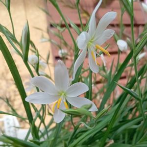 ヘスペランサ ファルカータ 昨日の夕方に📸 球根植えて、やっと咲いてくれたよ〜🥰 内側が白で、外側は赤のバイカラー❤🤍 キュートよね💕 ヘスペランサって、「夕方の花」っていう 意味があるらしい🤔 淡い香りがあるんだって でも、まだクンクン🐽したことない😅 今日は嗅いでみるかな