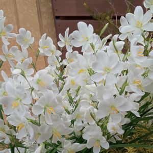 ヘスペランサ ファルカータが咲きました😀 草丈15センチ、純白の花が魅力的😘😘 情報量が少ないから手探りです😂