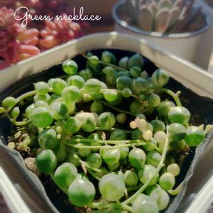 我が家のネックレスさん達💚 斑入りグリーンネックレスは、モリモリ度が半端ない。 中に入れても外へ伸びてくる😆 ピーチ🍑さんは、2つとも根付いた模様👍🏼💕 可愛いなぁ😍 👆🏼自己満以外…なんでもない😅 ネックレスの可愛さにやられて…エンジェルティアーズ、探し中👼🏻