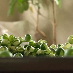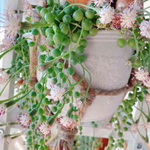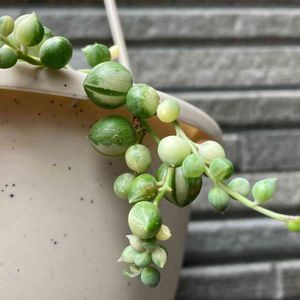 斑入りグリーンネックレス✨ ネックレスの先を鉢の中側に入れても外にタラっとする方向に向かっていくのが可愛い♡