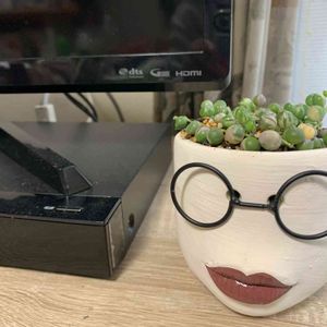 やばみ 憧れてたグリーンネックレス斑入り 可愛いくて清楚なイメージ✨ しかし何か可愛い鉢はないかと探していたら目があってしまった😳 うちの長女そっくりな植木鉢 可愛い鉢はいっぱいあったのにこれをチョイス😙趣味悪いかな😙 ロン毛になったらカット✂️してあげよう