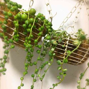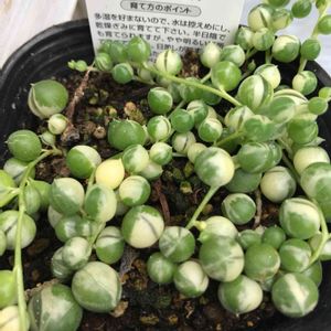 何度もダメにして来た斑入りグリーンネックレス 二か月前に購入して、今のところ外管理で元気そう🎵 この調子でいってほしい〜〜✨✨ 屋根なしベランダで、雨にも日光にも当たってると思います。 前にピンクの姿をUPした吊り鉢もまだ大丈夫👌 ひと鉢だけ室内に置いてたものはみるみるヘタってしまったので、大事にしすぎはダメだと改めて思った次第… もちろんGSの皆様の栽培方も参考にさせていただいていま〜す(o^^o)