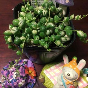 斑入りグリーンネックレス怖くてなかなか植え替えできなかったのですか、成長してきたので植え替えました😆ちゃんと根付きますように😌 昨日はセリアのランタンを塗り塗り🎵首が痛くなりました😅