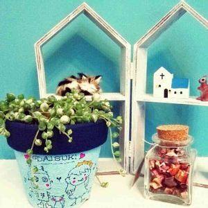 プレゼント企画で当選したまちゃごろーさんの鉢(^ー^) 何を植えようか、悩んだ結果、前から探し求めていた「斑入りグリーンネックレス♪」に出会い、やっと植えることが出来ました(^з^)-☆ この青色と、ねこちゃんがたまりません。笑笑 まちゃごろーさんの鉢 もっと欲しくなりました♪ 近くで実物見て、選べる日が来ないかなぁ~ 笑笑