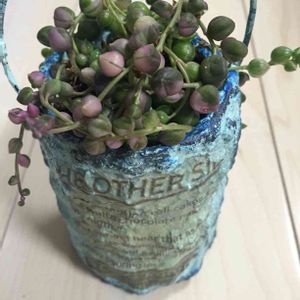 こんにちは✋️昨日お迎えした斑入りグリーンネックレス手作りレンガリメ缶に植えてみましたo(^▽^)o