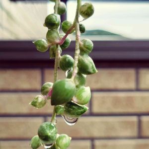 ネックレスの日🏷🌿✨✨ *・゜゚・*:.。..。.:** .。.:*・゜゚・* 今月も参加させていただきまーす✨✨✨ 斑入りグリーンネックレス🌿💚🌿✨ この春植替えして、多肉棚から場所が無い為、ベランダ物干し場へ😅 元気にブラブラしていまーす😁