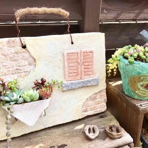 寄せ植えが出来るモルタル造形を作りました😃 後日イベントで販売予定。 もらい手がなかったら自分の家に飾ります笑笑 久しぶりに斑入りのグリーンネックレスを購入したので、先日作ったモルタル鉢に植えました💚🤍