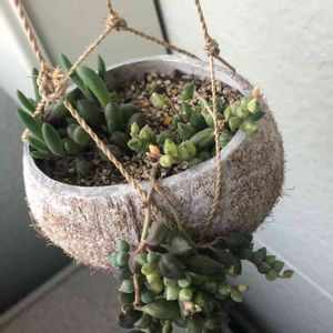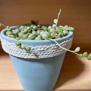 おはようございます☀️ 今日は暖かくなりそうです🎶 🏷錦の日 🏷平和を願う 花友さんにいただいた寄せ植えに入っていた斑入りグリーンネックレス💚 増えてきたので手作り鉢にin💚💚 たくさん増えると良いな(⑅•ᴗ•⑅)◜..°♡