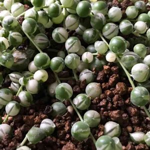 斑入りグリーンネックレス✨ 上から①②③でお願いします☺️ 右側は左の拡大です。 みどりのまとめに慣れてなく😅 見にくいですが,見ていただく方は拡大しながら見てくださいね😉 ①根があるところは土と繋がっていますが、伸びているところは土から浮いているので,その間に赤土を撒きます。 グリネの茎に土が触れていると根が出てきます。 根が出る箇所が多いほどしっかりと根付くのでそれを目指したい! ②このくらいパラパラと。可愛い粒が見えなくなると思ってしまいますが, ③上から水をかけると 赤土が間に入り込み、粒が顔を出し 茎にふわっと土がかぶさります。 こうするとあちこちから根が出てきます🌱🌱🌱