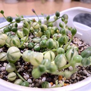 おはようございます☀️ グリーンネックレスの斑入りを去年初めて迎えました❣️ 暖かくなってもう少し増えてくれるといいな😊 🏷️ネックレスの日 🏷️毎月8日は鉢の日 参加させていただきます