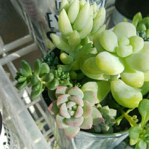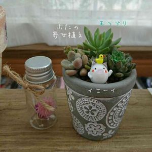 昨日いただいた寄せ植えの枯れた葉を取り除き、小さい鉢だらけで置き場所が無くなってきたので、思い切って寄せ植えにチャレンジ!!今ある多肉ちゃん達を集めて、カラフルにはならなかったけど…いいのか?これでいいのか!?って感じで何とかε=( ̄。 ̄;)フゥ そしてGSを開いて素晴らしい寄せ植えを見て凹む(笑)あと、簡単なハンギングも作りました。頑張った記念でアップ📸