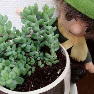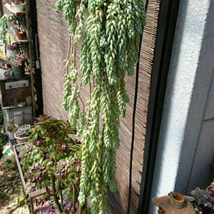 セダム・玉つづりがいい感じに伸びてきました🎶 ジュートサックみたいなテラコッタ鉢です😄