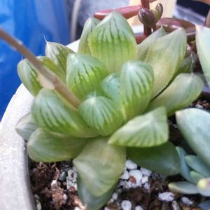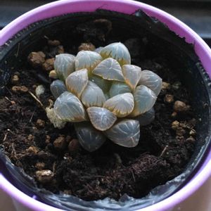ついに念願のハオルチアオブツーサトゥルンカータさんヽ(≧▽≦)ノ 鉢ごと送られてくるとばかり思っていたら抜き苗で届いてビビる笑” 育てる土と鉢がうちには有りません笑” なのでこの子も水栽培してみることに😅 届いた時は立派な根が付いてたのですが、迷いつつえいやっとバッサリ切らせて頂き、乾かしているうちにやや萎み、お水へ••• 欲しくて欲しくてたまらなかったオブツーサさん、お願いだから無事ぷりぷりになってください🙏💦💦 我慢できず窓をそーっと触ってみたらコトブキさんと比べると柔らかい!笑” このお花のような生え方もまたいいですよね❤️ もうハオルチアの虜です笑”