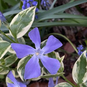 ツルニチニチソウ(蔓日々草)キョウチクトウ科 南ヨーロッパから北アフリカ原産。 こちらも明治初期に渡来したものが旺盛に育つので各地に野生化している。 うちの庭でも放っておいたら、あちこちから出て延びてウッドデッキの下までも行ってしまって大変なことになってました❕