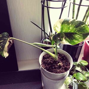 こんばんはMe19です! 斑入りモンステラさん50cm 大きくなればなるほど 切れ込み細かくなって穴も増えてくので新しい葉が出るのがホントに楽しみですよね。