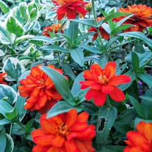 こんばんは😃🌃 お庭のジニアさんとツルニチニチソウさん🌼🎶 元気に咲いています❤