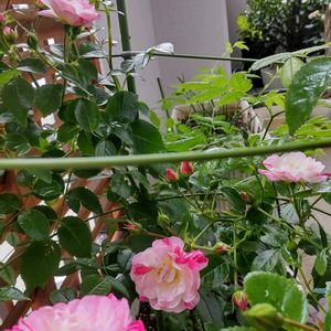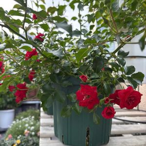 🌹 トロイメライ 🌹 ロサオリエンティス バラ初心者🔰です🫡 土や肥料や薬剤散布etc… 全く分からん🤷♂️状態で2月から大苗をお迎えしてスタート!! とっても香りが良く "バラ🌹って 最高〜❣️"と木村社長の決めポーズを真似して喜びました🤗 2️⃣フラワーカーペットローズ🌹 PWアンバサダーで届いたミニチェリーです。這うように育ち、マンションの屋上で育ててると何度も鉢が倒れてしまいました…😓 しかし、きゃしゃな苗なのに枝が折れる事も無く、強風🌀でも折れずに育ちました👍病気にはなりませんでしたが、やはりアブラムシ等の害虫対策は必須です‼️ 3️⃣グリーンアイス 一昨年、カインズで100円でレスキューした苗です🪴 スーパーで購入した赤いミニ薔薇と一緒の鉢で育ててます。 とても強いミニ薔薇ですが、フラワーカーペットローズと同様に這うように枝が広がって咲くので何度も鉢が倒れてしまいました…😰 広がるタイプの薔薇は私好みでは無いので、冬になったら仕事場の庭で育ててみようと思います😝 4️⃣名のないバラ🌹 昨年、スーパーのロピアで売られていた100円のバラですが1番上手に咲きました😍 "ロピアって 最高〜❣️"