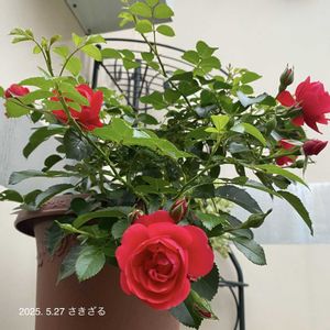 🌼ローズ🥀便り☔️ 【#フラワーカーペットローズスカーレット 】 🗓️定植2024-3/24 → 2025-5/27 (61w2d) 🧭南西 8号1株 ☀️4時間 🚿朝1回 🧴液肥週1 2024春に2苗頂いて1年2ヶ月くらいになりますがこちら1号(勝手に呼んでます) 支柱は建てずになるべく低い位置で咲いてもらってます🐵 2025春に🥀ミニチェリーを頂いたのですがスカーレットの方がお花は大きいです🧐ミニとついとらへんもんで当たり前か😆あはは 小庭は自然派を目指しているのでお薬はほぼ使っていません🐵虫にも食されるしハプニングもあるけれど当たり前だから良し👍とします🐒🎶 ちなみにこのローズさんも葉はどなたかに食されています🧐 『ここだけはアピっとこう』 お薬をしてないから食されたりするけれどお花は大切に育てています #pwスーパーアンバサダー2024 春で頂きました#ローズ #バラ