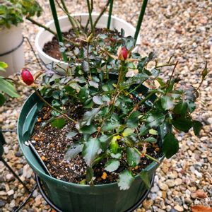 🍃ハクサンアンバサダー🍃 #フラワーカーペットローズ #ミニチェリー 植え付けました ミニバラの培養土が ちょうど手持ちであったので そちらを使って植え付けして みました😊 わりと、サラサラした土な 感触です 一旦、大きめの鉢に 2🌱植えてみました これから楽しみです♪