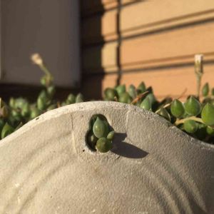 ハンギング用の穴からグリーンネックレスがこんにちは。