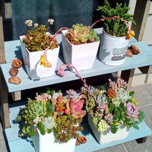 こんにちは😊 昨年のプレ企画でタニカノさんから、頂いたプランターの多肉ちゃん達🍀💕 1年も経つと、結構ボロボロでした。 全部抜いて植え替えしました🤗✌️ プランターが素敵だから、植えるのも楽しかった〜😍😍🎶