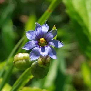 ルリニワゼキショウ(瑠璃庭石菖)アヤメ科ニワゼキショウ属 ルリニワゼキショウが綺麗に咲いていました。 あまりに天気がいいので、日傘をさしたり、自分で影を作ったり撮り方イロイロ。 色も多少変わってるのもありますが、濃い青色が綺麗でした。 2⃣ 下 これから咲きそうなニワゼキショウ 6月5日 北米原産の帰化植物です。特徴は、青紫色の花と細長い葉、そして雄しべが合着して1本の棍棒状になることです。また、花弁の先端が尾状に尖ることも特徴の一つです。 丈は15-20cm