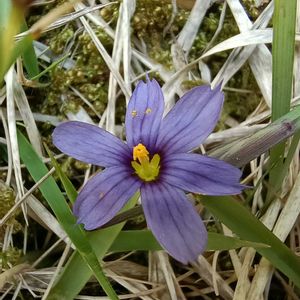 あれこれ投稿したいお花はあるのですが 今日はこの子に会えてテンション上がりっぱなしです(°▽°)r だって昨年以上に株が大きくなって花も増えていたから♡ ルリニワゼキショウ(瑠璃庭石菖) アヤメ科ニワゼキショウ属 実物はもっときれいな瑠璃色です。 今日は花裏からの姿も入れてみました♪ 一緒に写っている小さなお花も気になりますがこちらはまた後日。 会えた喜びに浸りたいと思います(^^)♡