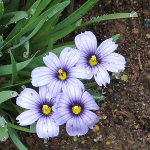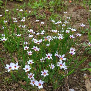 おはようございます☀細長い葉っぱの先にちょこんと咲くこのお花の名前知っている方いますか?🙇♂️蕾がとても可愛いお花です。😆 ニワゼキショウと教えていただきました。回答してくださった方に感謝🥰とてもスッキリしました。他のお色もあるのですね🤔見てみたいです。 どうやらルリニワゼキショウらしいです。アップルさんの本日投稿のお花にそっくりです。😊
