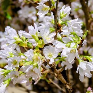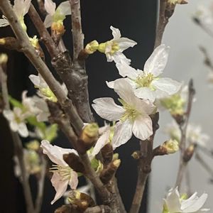 🌸 啓翁桜 🌸みちのくの初桜 真冬のお正月飾りに飾ってみました。 ☆GSの皆さまご挨拶が遅くなりました♪ 今年も大好きなお花達に沢山出会い、心癒されpicを撮りたいと思いますので…宜しくお願い致します♡ 細い枝に、薄紅色の可愛い一重の小さな桜の花が次々に咲いてきます。