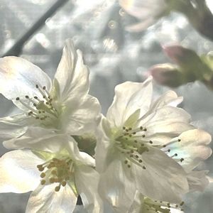 啓翁桜🌸 切花コーナーの啓翁桜 毎年 この時期に 部屋の中を暖めてくれる。 ①逆光で窓ガラス反射して スッケスケが美しいなぁ🥰 ②優しげな。 ③下枝切っても捨てないで チビ花瓶に。開くといいなぁ🌸 寒波後には 春が待っている ( ˶ ᷇ 𖥦 ᷆ ˵ )💕