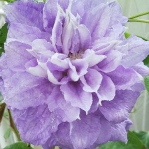 おはようございます*ˊᵕˋ* 今朝も鳥がさえずり、爽やかな晴れです☀️でも昼間は、暑くなりそうですね…😅 今日のpicは、GSて一目惚れして、名前をチェック。ネットで探して、去年の秋に購入したクレマチス‘マズリー’。 ずっと蕾のままで、いつ開花するのかと思ってましたが、やっと昨日開花しました😀直径15センチくらいの大きな花で、ブルーの色がステキ💕 実際にはもっと水色っぽくて透き通るような色なんだけど…スマホの限界か上手く色が出ません…😅