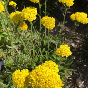 🌼キバナノコギリソウ キク科 ノコギリソウ属 シダの様な群葉で葉は線型の羽状複葉で切れ込みがあり鋸歯状。毛もありザラザラとした質感をしている 花は複雑な特徴があり散房花序か、円錐花序でつく 小さな散房花序は全体に弓なりに曲がっているか凸面になっており その結果花の集まりや複散房状花序の表面が平らでなくなってるそうです