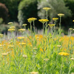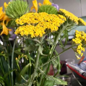 学名:Achillea filipendulina 🇩🇪名:Die Goldgarbe,Die Schafgarbe 🇯🇵名:キバナノコギリソウ、ヤロウイエロー キク科ノコギリソウ属 ロシアのコーカサス地方原産 花言葉:「指導」「真心を持って」「戦い」「悲嘆を慰める」「 治療」「治癒」「勇敢」「私を治してください」など。 切り花、ドライフラワー、染色などに使用。 ハーブティにも? ハーブとしての情報はいまいち。。💦