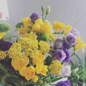 初めての母の日にこんなブーケをいただきました💛💜 ちょっと疲れ気味の新米ママですがおかげで元気が出ました⭐️🔮