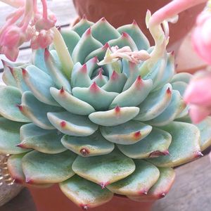 おはようございます😃🌤 桃太郎(ベアトリス)🍑 三が日も今日まで、定番エケベリアもアップしておきたいような⤴⤴特に根拠なしだけど😅 よい一日を🐬.。o○🌈🌏