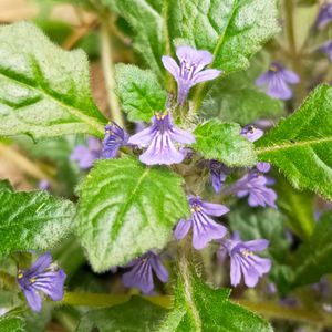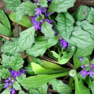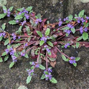 キランソウ💜 道路脇のアスファルトと石垣の間から咲いていました😊 左上がかすんでいるのは高低差が有るから😅 📱を落とさないようにカシャしました😂 2枚目は先日も投稿した我が家の裏庭の画像ですが😅 葉っぱの大きさなど生育している場所でちょこっとずつ違いますね😊 それにしても過酷な場所を好むのでしょうか🤔