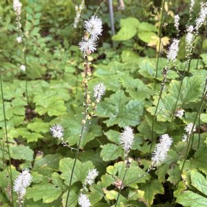 《イヌショウマとサラシナショウマ》 白い穂状花序をつける、イヌショウマとサラシナショウマですが、基本サラシナショウマの方が草体も花序もずっと大きいです😍 ただ、成長具合もあるのでときに迷わされることもありますが、一番確かなのは、個々の花の花柄を見ることです。 ②のようにイヌショウマの花にはほとんど花柄がないのに対して、④のようにサラシナショウマの花にはハッキリと分かる花柄があります🤔