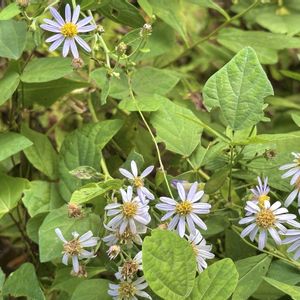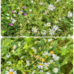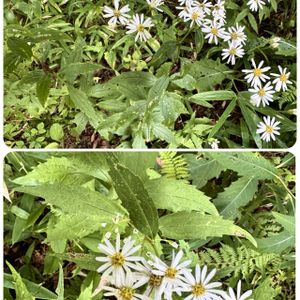 こちらはシロヨメナですね😍 ヨメナの類はなかなか分類が難しい。 関東以北に分布するカントウヨメナ、中部以西のヨメナと棲み分けされているのもあります。 シロヨメナは、長楕円状被針形で、荒い鋸歯のある大きめの葉に小さめの花がつきます。葉はザラつかないと言われますが、実際はザラつきますね🤔