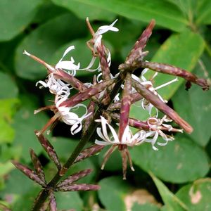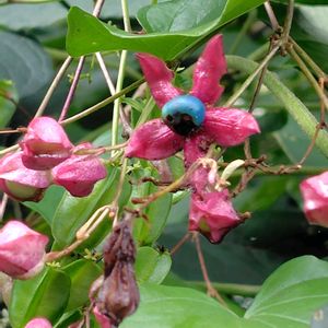 クサギ シソ科クサギ属 落葉低木、小高木 北海道〜九州、琉球列島に分布 平地から山地の日当たりの良い原野や林縁、河原、土手、山道や谷の沢沿い、道端などに見られる。 花期7〜9月 果期10〜11月 果実は液果で、秋に直径6〜7mmの丸い実が藍色に熟す。 果実を覆っていた卵形の5枚の萼が紅紫色の星形となって開き、そのコントラストが美しい。 果実は草木染めに使われ、藁の灰汁で煮出した液で衣類を染めると浅青色(青緑色)となる。 🏷️木曜日は木 🏷️木曜日は木になる実 に参加させていただきます。