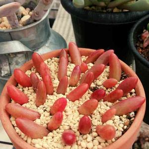 「オーロラ」 Rubrotinctum variegated ベンケイソウ科 セダム属 オーロラの葉挿しがかわいいことになってます!😆 これからどんなになっていくの~? 楽しみです!😄