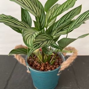 カラテア・ビッタータ セリアのストーン風4号鉢に植えました。