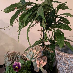 ちょこっと野菜を買いに行っただけなのに🥴🥴 時間があったので隣の園芸センターへ うかうかと近づいてしまいました。 名前不明の多肉 品種不明のビオラ クラリンドウ 鉢 ヤバい、私の植欲🥴🥴🥴
