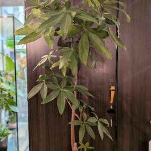 パキラ 冬の丸坊主から、半分の背丈に剪定✂️ そしてこの夏の成長。 葉の厚さが逞しく、嬉しくて、ついつい触ってしまう🤭🤭 置き場所問題 勃発🤭🤭 15年前と同じ大きさ🤣🤣 その上、同じ鉢 🤣