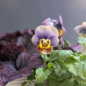 今年最後のビオラにしよう。 絶対に。 なんとも上品なグレイな紫。 ちらっと写ってるのはヒューケラドルチェ ブラックベリータルト 美味しそうな名前。