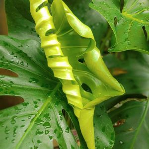 くりんくりんのモンステラ・デリシオーサ 可愛い✨✨ 葉っぱは、大きくなると1mを越えるみたいですから、1度はうちでもそれくらい大きくなった姿を見てみたい😊😊 地植えじゃないと無理ですね😅😅