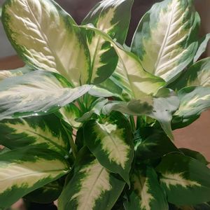 ディフェンバキア とってもありきたりの植物。 わさびのような茎だけの姿になったり、茎が曲がってしまったり、間延びしたり、葉っぱが真横や下を向いたり、下葉が無くなってしまったり いっぱいのトラブル! こんなに ありきたりの植物なのに、いざ自分で理想の姿に仕立てようとしたら とっても難しい! 3年目の今年、やっと にっこりするような姿になってくれました😊 次は、お店でたまに見るディフェンバキアのような、わさわさ繁った大きな大きなうちわのような葉っぱにしてみたい😊😊